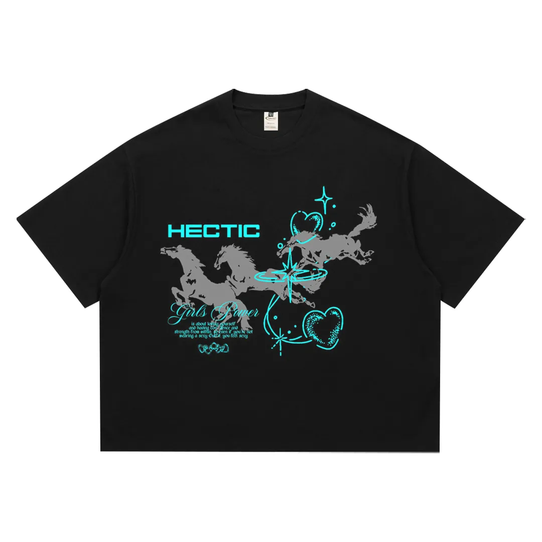 Hectic – T-shirt kaos katun Boxy fit – Hitam – Cyan Love