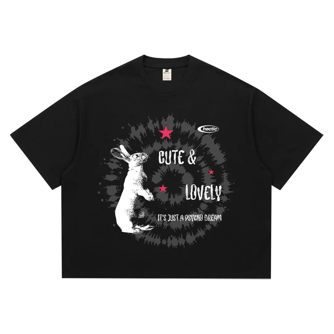 Hectic – T-shirt kaos katun Boxy fit – Hitam – RABBIT